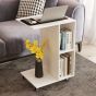 C-Shaped End Table Narrow Side Table with Storage Shelves-White