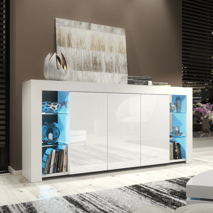 Cabinet Cupboard Sideboard TV Unit with Free LED Lighting and Storage 164cm - White