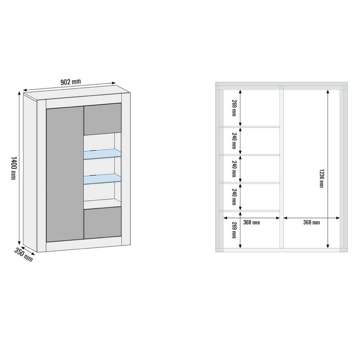 CANNES Display Cabinet 140cm - Dark Grey