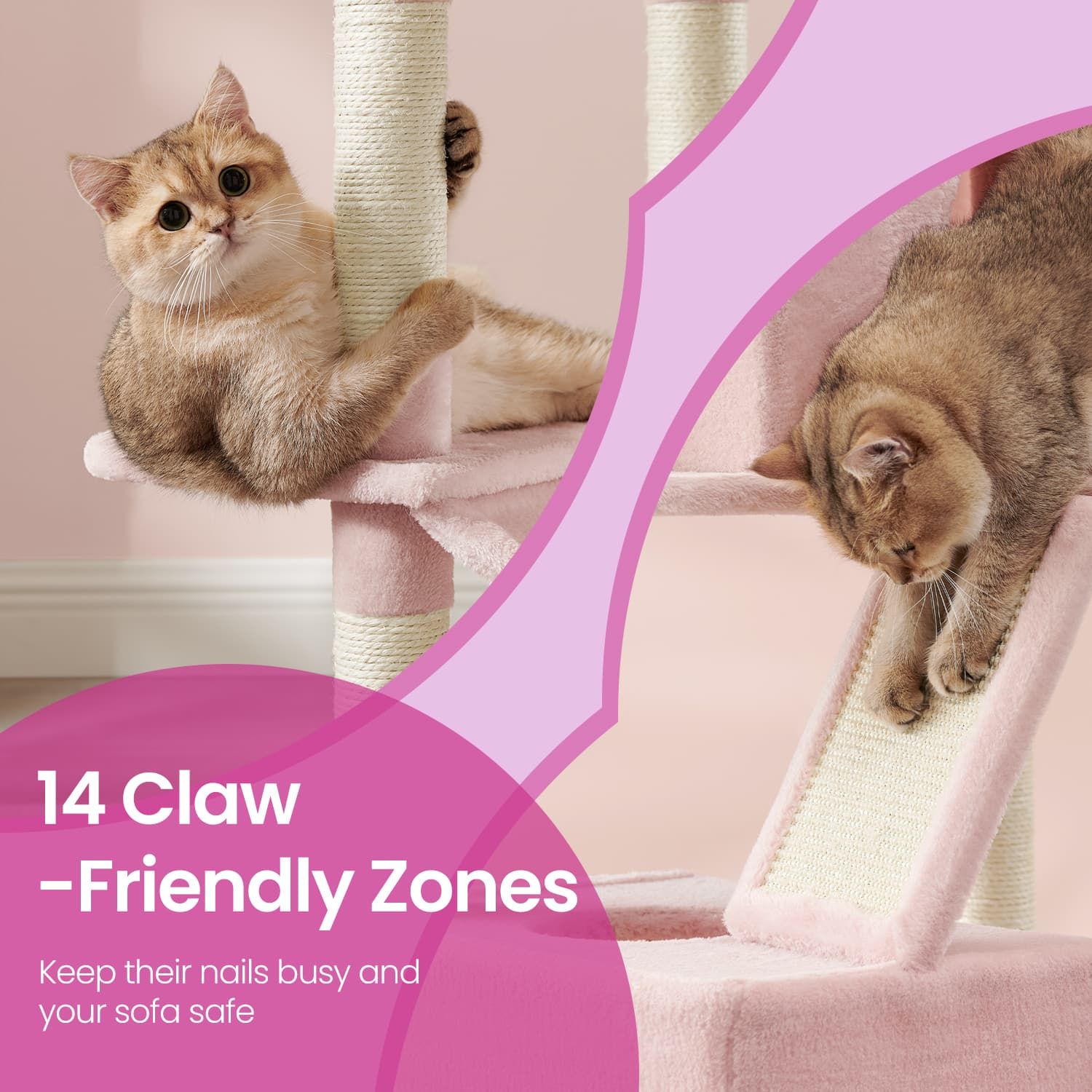 Cat Tree - MARRAE Large Tower Scratching Posts Perches Hammock - Jelly Pink