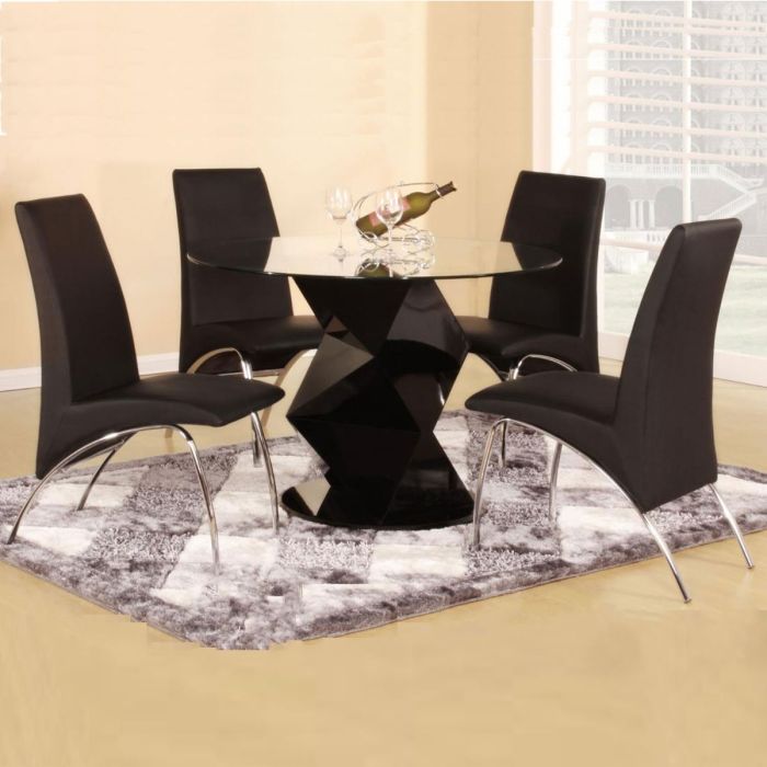 Centralia High Gloss Dining Set with 4 Chairs - Black
