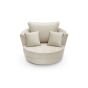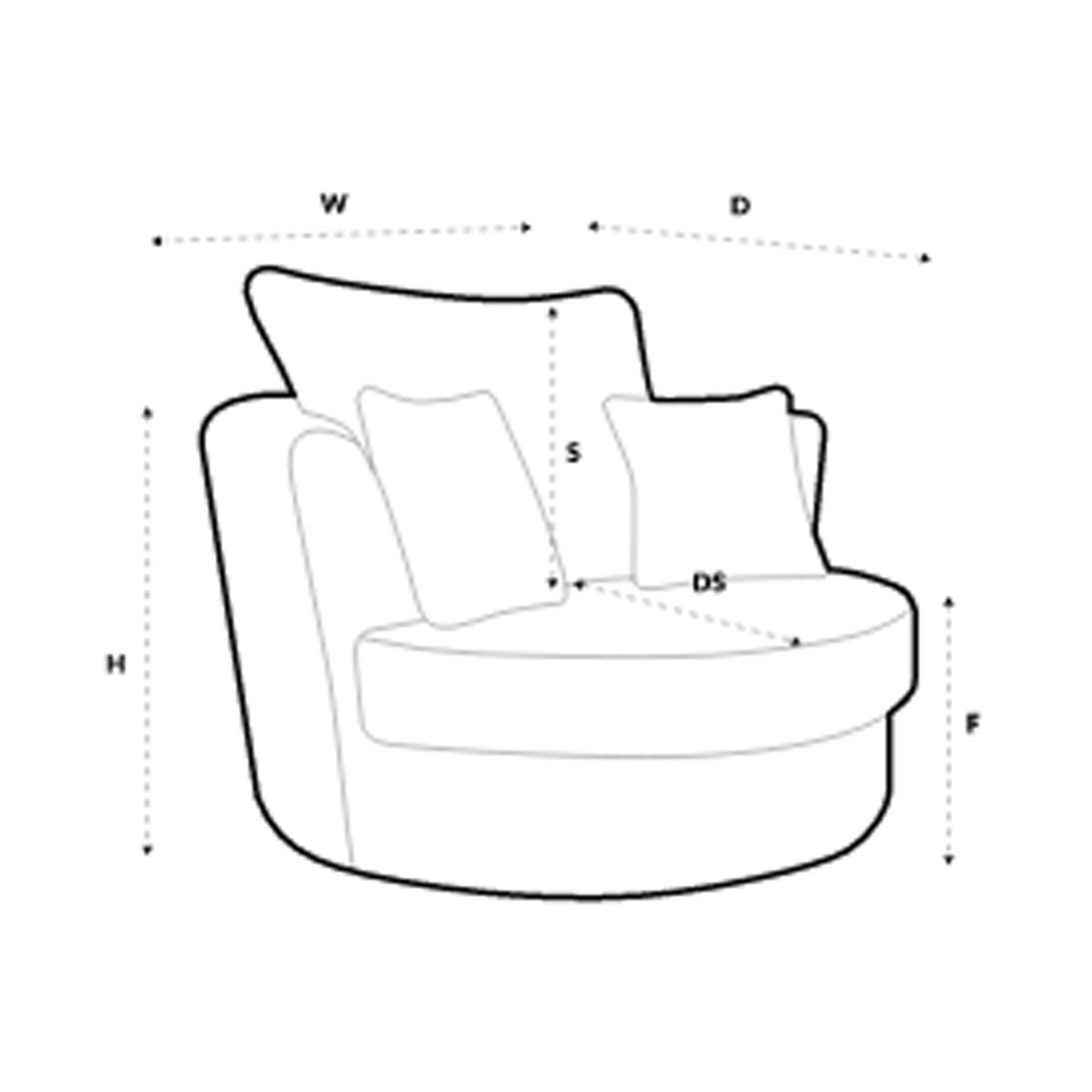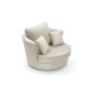 Swivel in style with this stunning 360° swivel chair. Generous for one and a very cosy for two, this might just be your new favourite seat in the house. A thick seat cushion, tall flared back and a couple of toss pillows rested on a half-moon pared back doubling as an armrest will leave you with nothing to complain about.