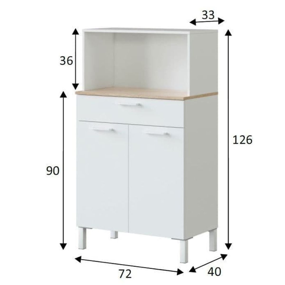 The Chris Kitchen utility cupboard in white with oak effect worktops. This cupboard features 2 doors, 1 drawer and a hutch perfect to store your microwave.