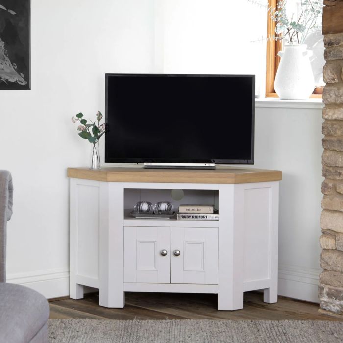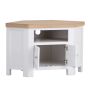 Chunky Oak Corner TV Unit with Soft-Close Doors and Cable Holes - White