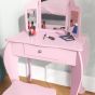 CLENHAM Kids Vanity Table with Tri Folding Mirror and Stool - Pink
