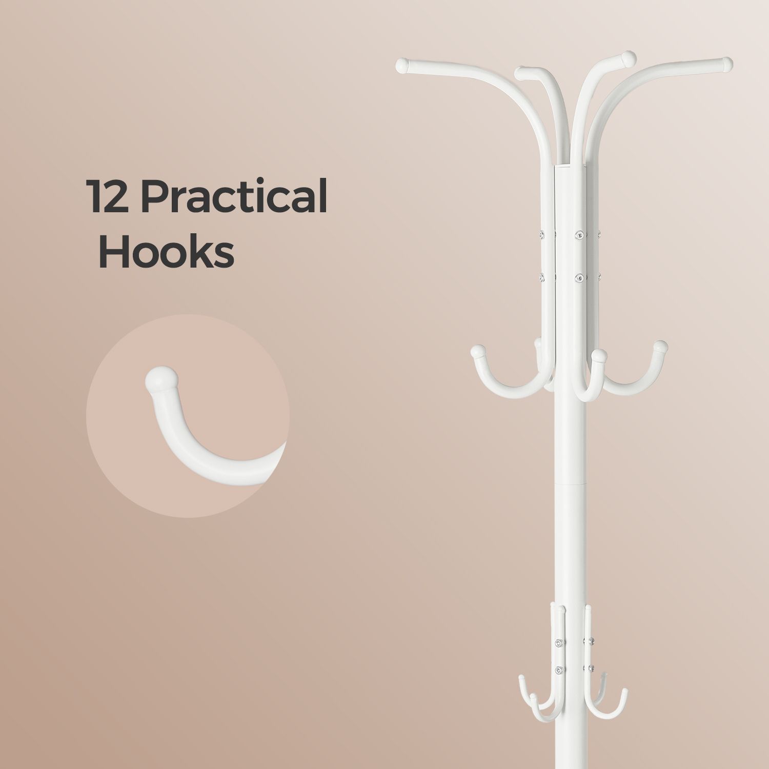 Coat Rack - ZARNIA Freestanding Metal Stand with Umbrella Holder and 12 Hooks - White