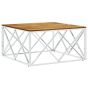 Coffee Table Silver Stainless Steel and Solid Wood Acacia