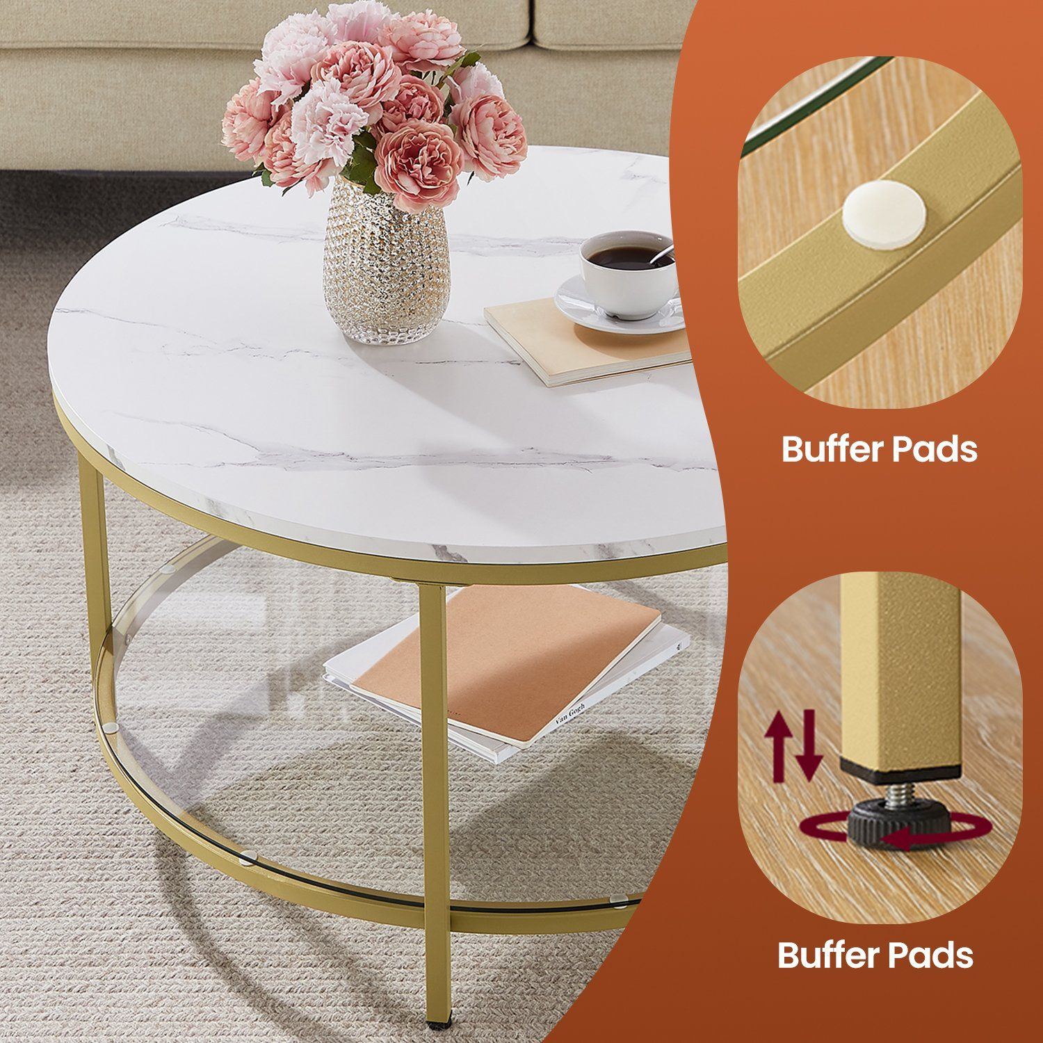 Coffee Table - VERRA Sofa Cocktail Table Gold Metal Frame Marble White - White