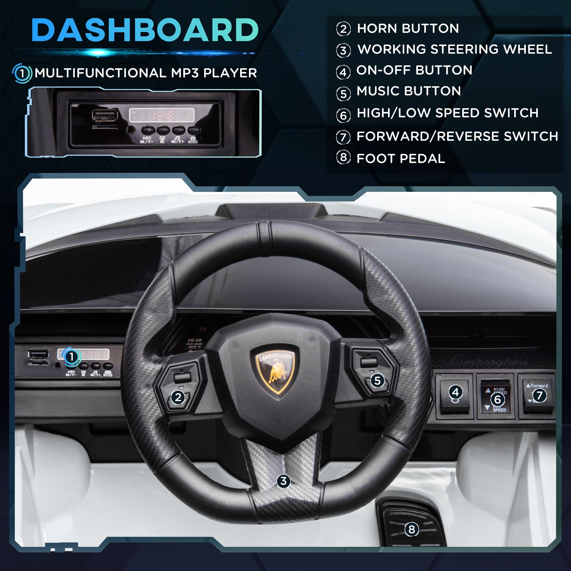 Compatible 12V Battery-powered Kids Electric Ride On Car Lamborghini SIAN Toy with Parental Remote Control Lights MP3 for 3-5 Years Old White