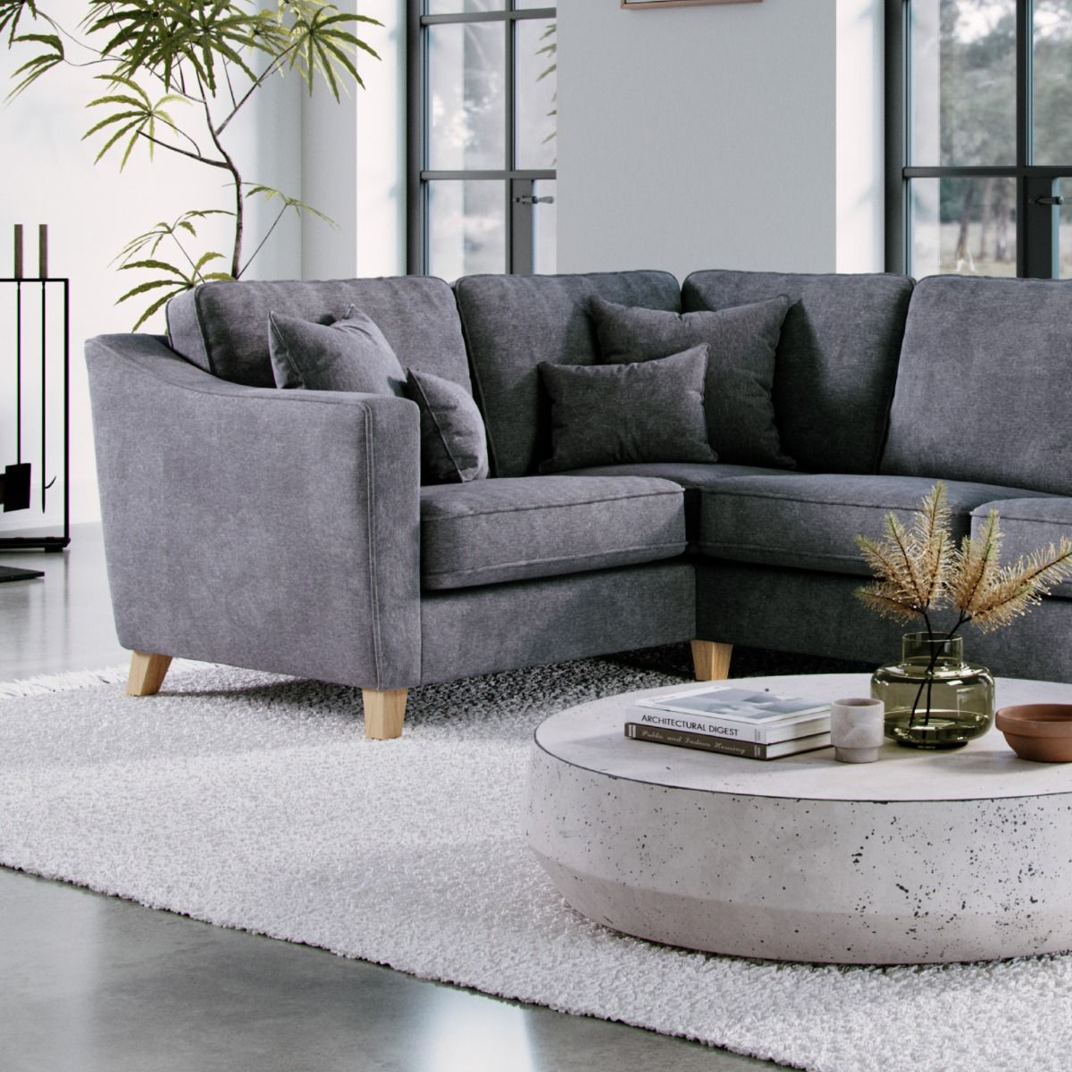 Corner Sofa - KRISTY Fabric 3 Seater Right Hand Facing - Grey