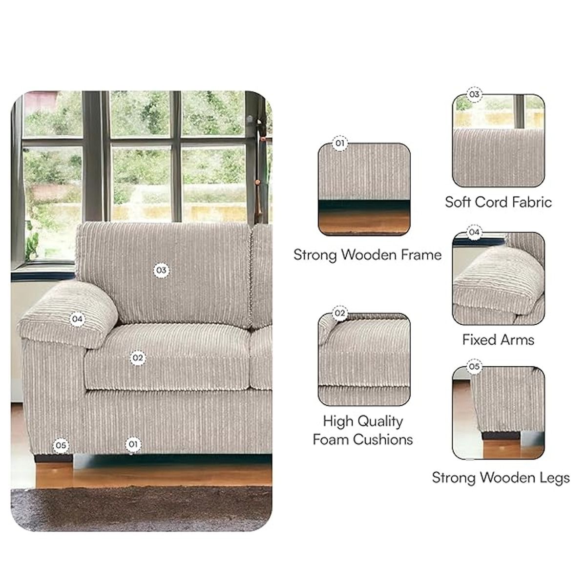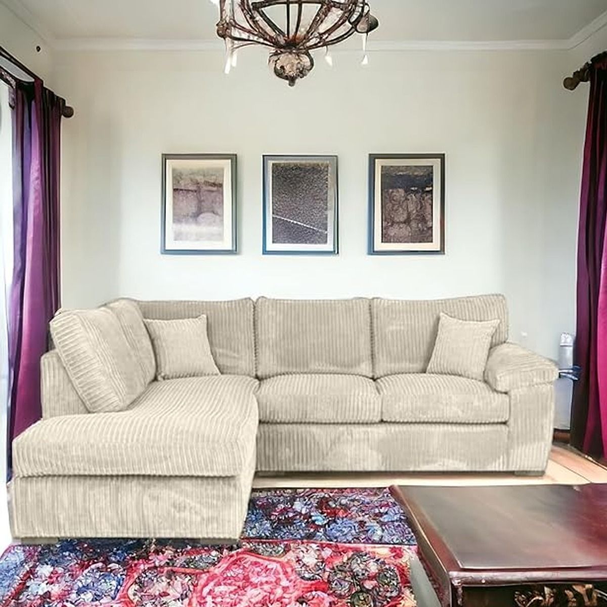 Corner Sofa - LARGE CORDURA Full Back Jumbo Cord Left Hand Cream