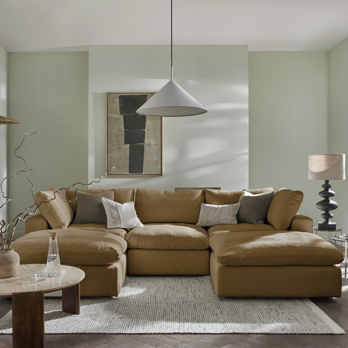 Corner Sofa - OBLAK Fabric 5 Seater U Shaped Amber - Footstool End