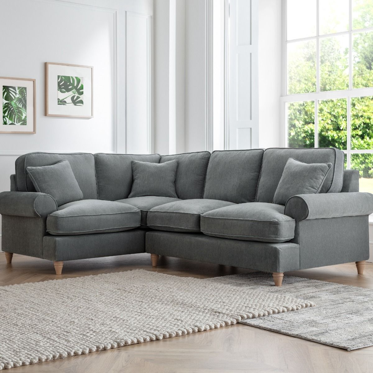 Corner Sofa - RAYONG Fabric 4 Seater Right Hand Facing - Charcoal
