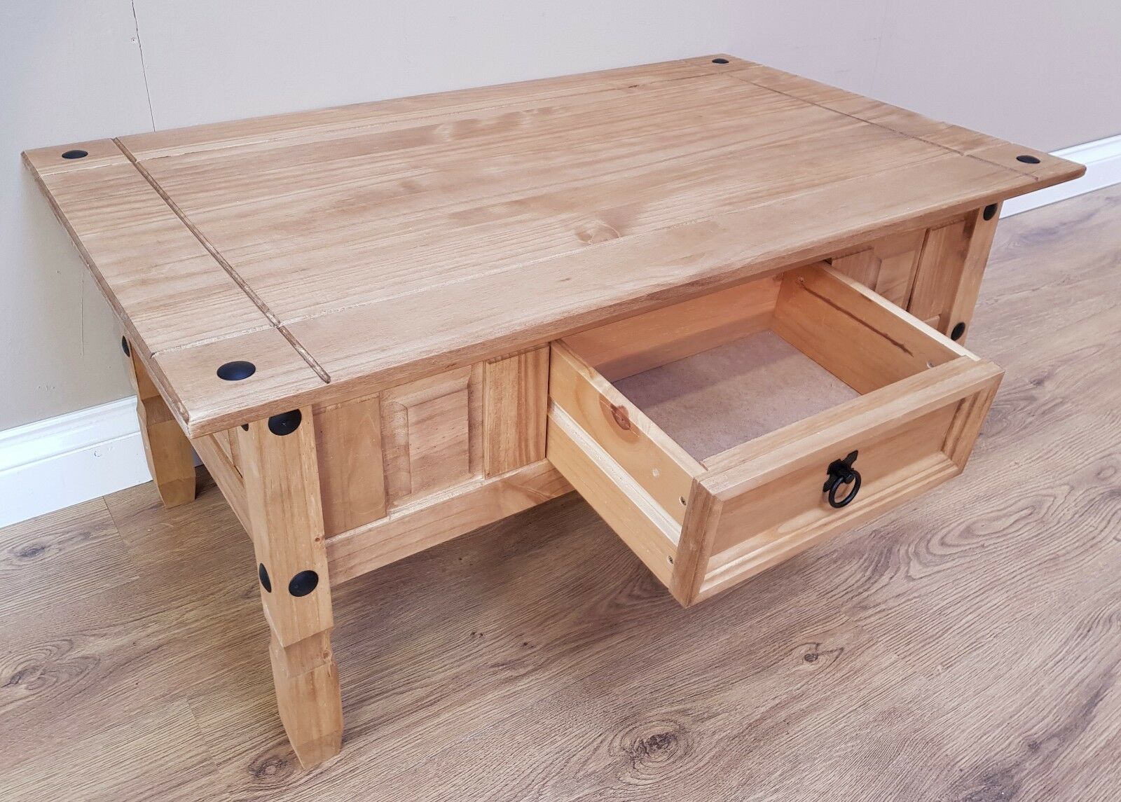 Corona Coffee Table Solid Pine 1 Drawer - Mexican Style