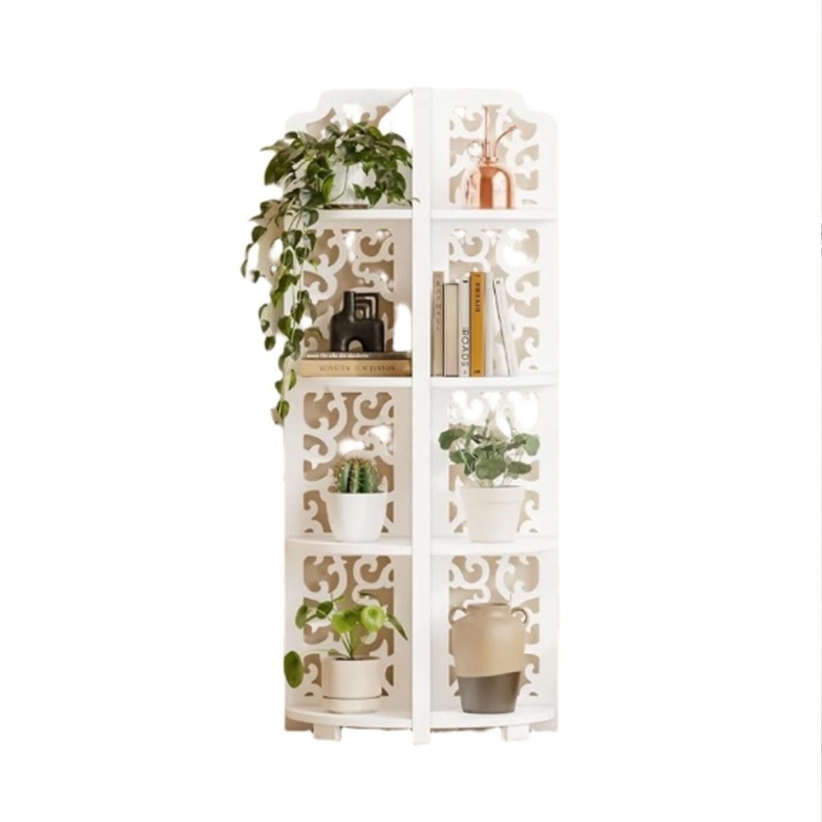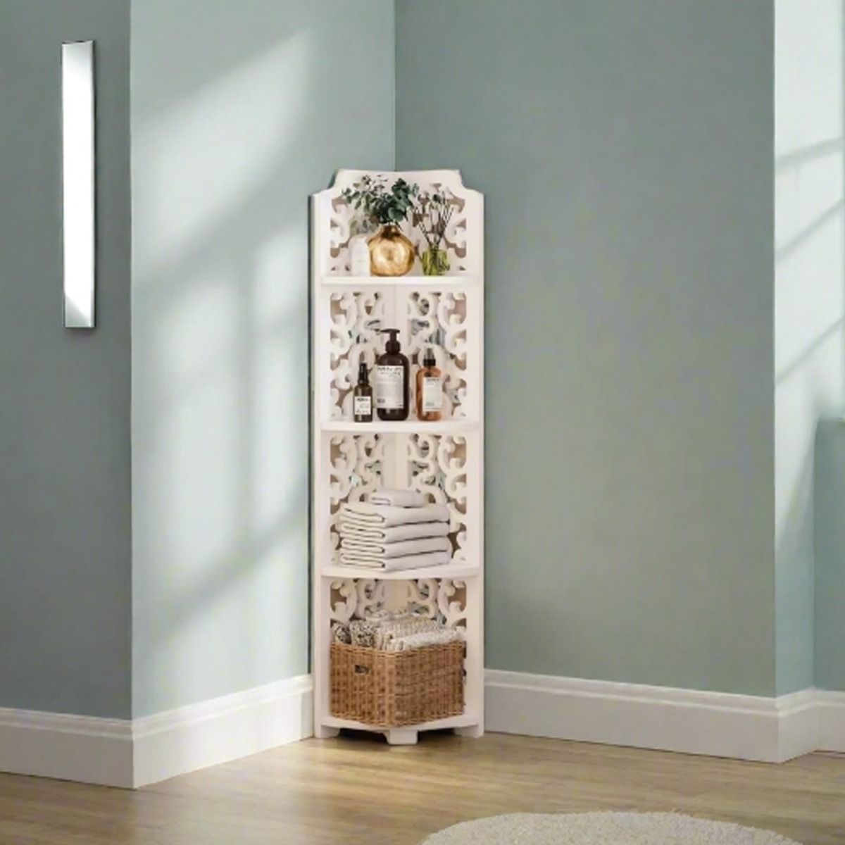 CORTHANE Corner Shelf 4-Tier Free-Standing PVC Storage Unit for Bathroom or Living Room - White