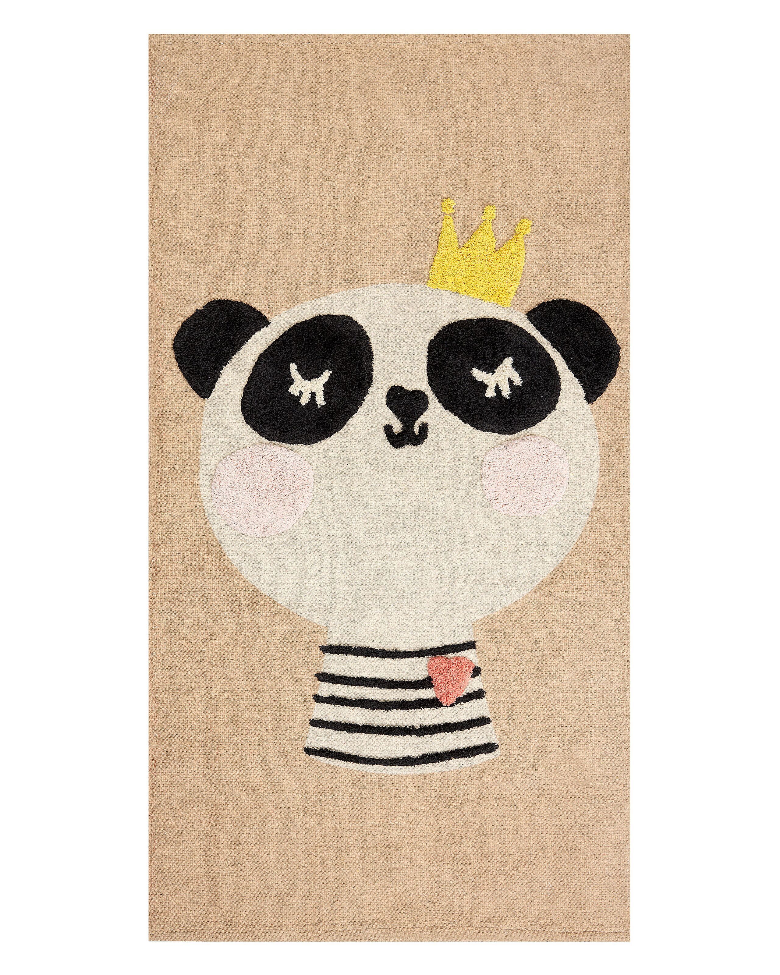 Cotton Kids Rug Panda Print 80x150cm Beige