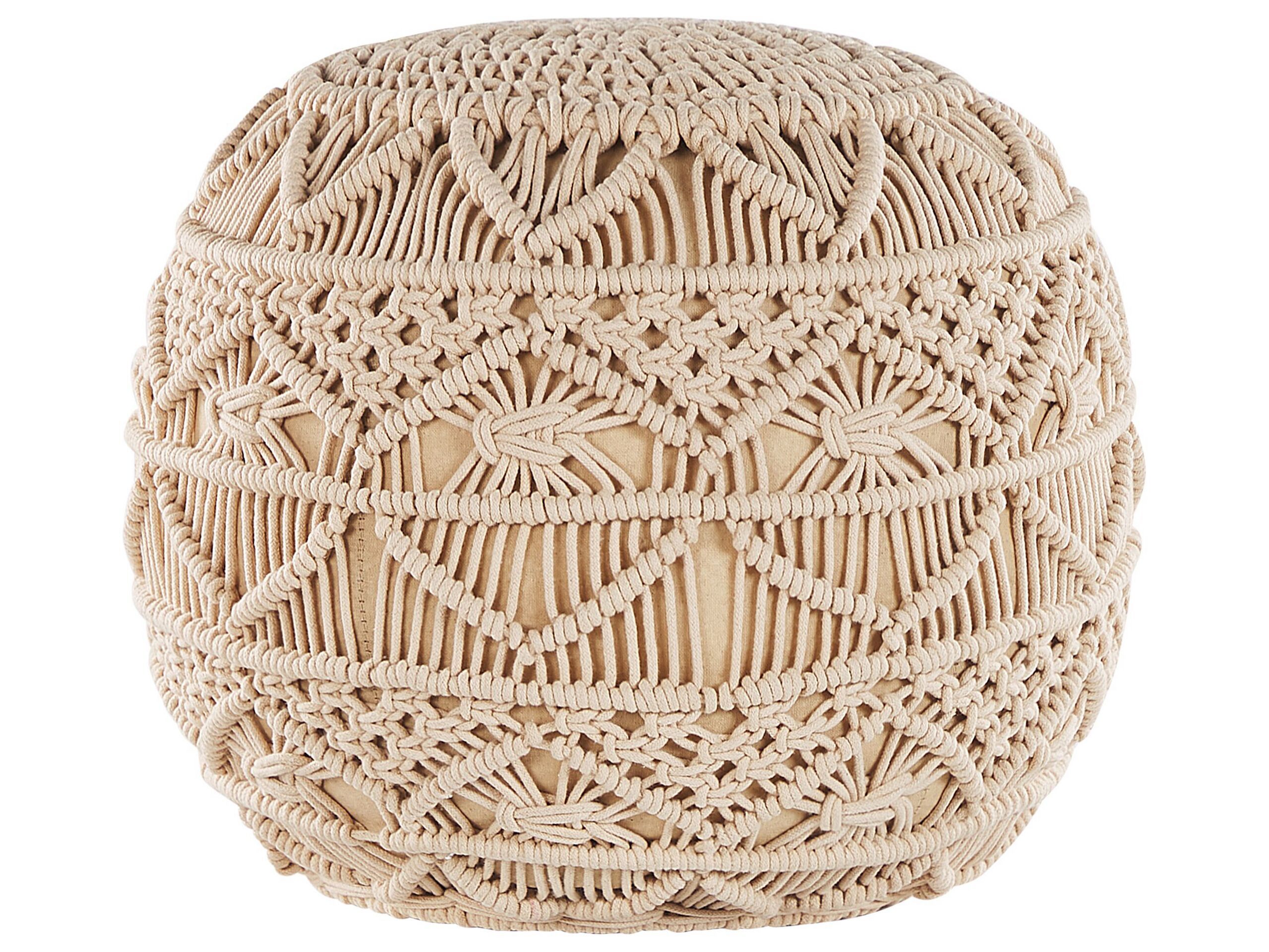 Cotton Macrame Pouffe Beige KAYSERI
