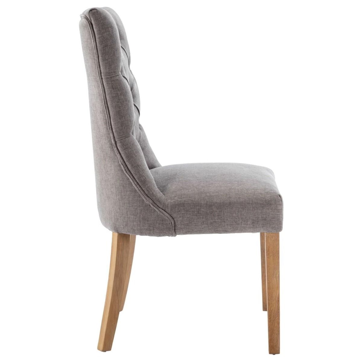 Curved Button Back Fabric Dining Chair with Oak Legs - Grey