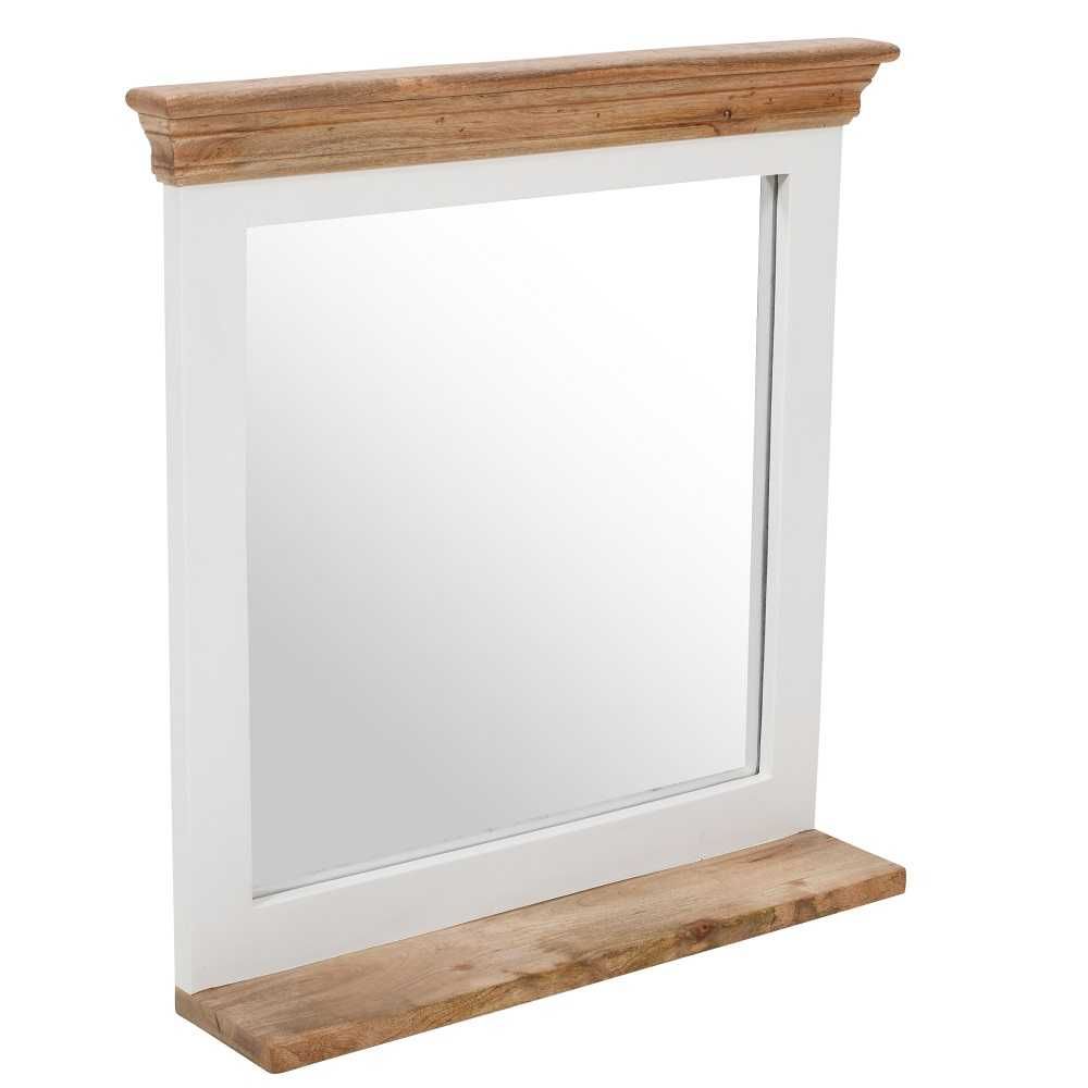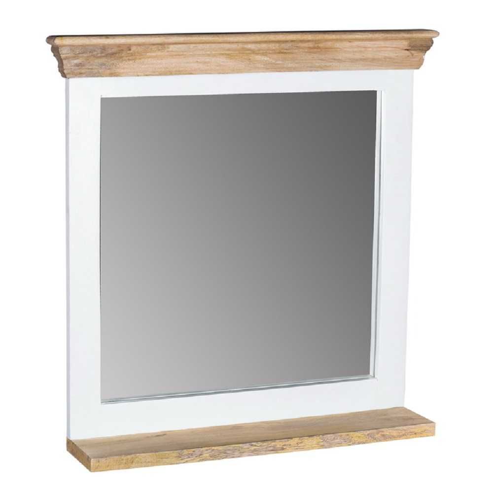 Deacon Solid Mango Wood Mirror Frame With Shelf - White and Natural Finish