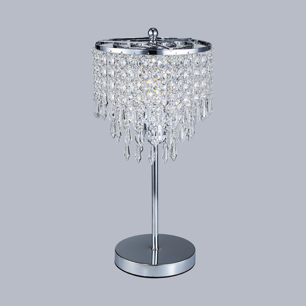Delicate Crystal Table Lamp with Slender Stem and Round Frame