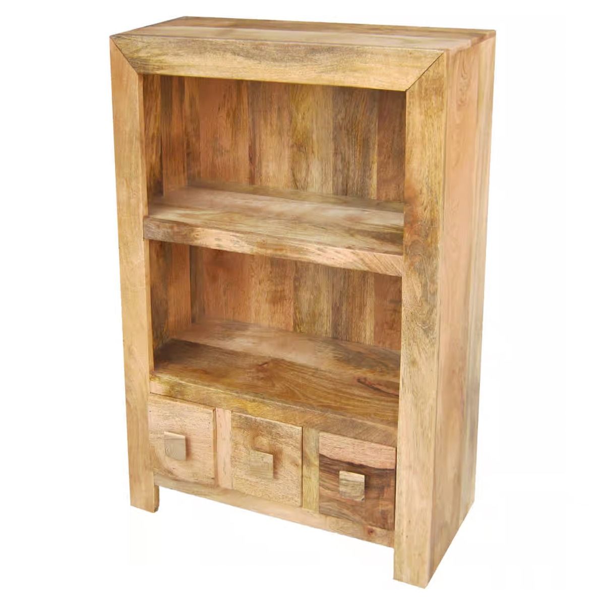 Delta Light Mango Wood Small Bookcase with Drawers and Shelf - Light Wood Tone