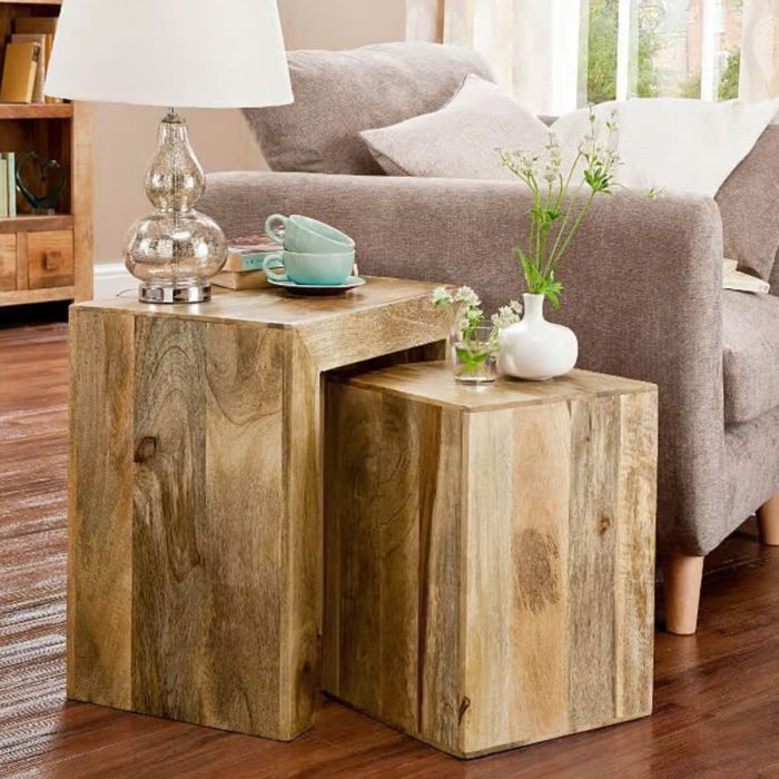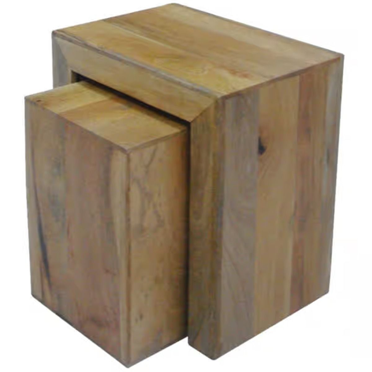 Delta Mango Wood Cube Nest Of 2 Tables - Light Wood Tone