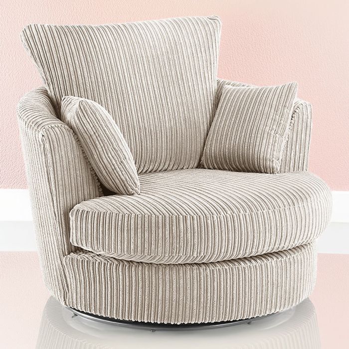 Desmond Jumbo Cord Upholstered Swivel Chair - Cream