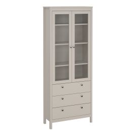 BURNLEY China Cabinet 2 Glass Doors with 3 Drawers in Beige