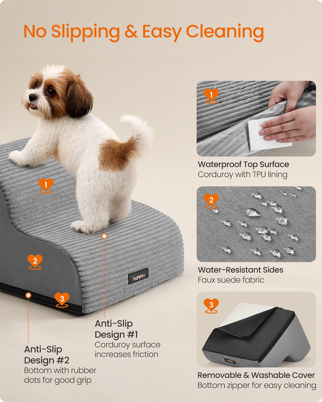 Dog Stairs - GRARA Gentle Slope 2 Steps with Anti-Slip Design - Dove Grey
