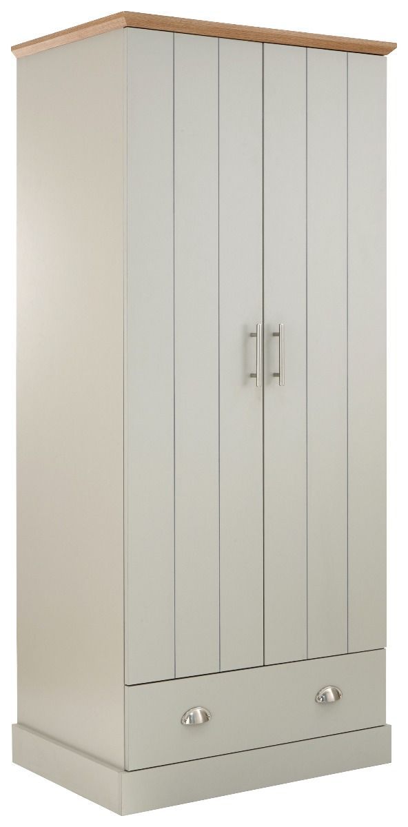 KESWICK 2 Door Wardrobe Set 4 Pieces - Grey with Oak Top