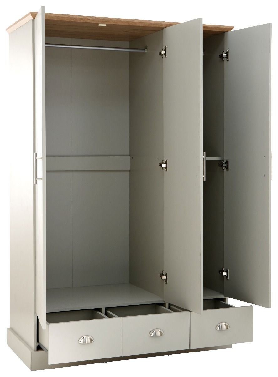 KESWICK 3 Door Wardrobe Set 4 Pieces - Grey with Oak Top