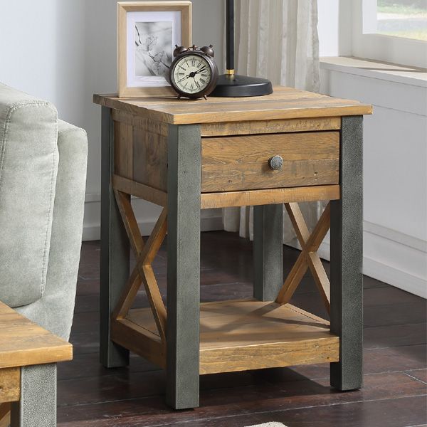 Doyle Cross Design Frame Rustic Lamp Table With Drawer