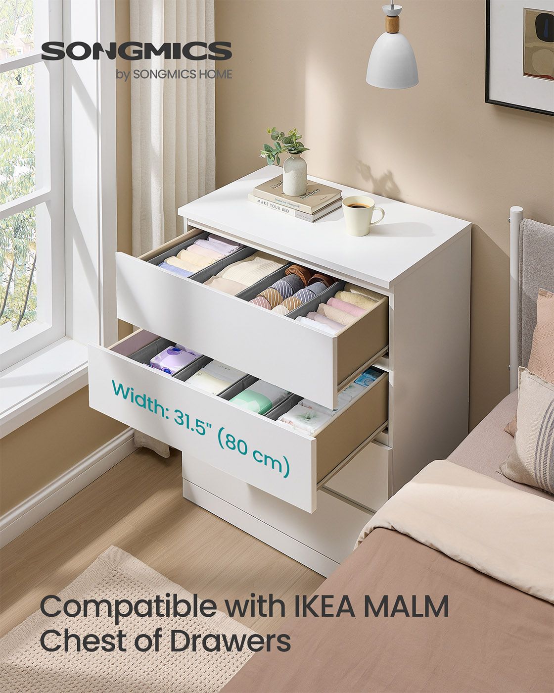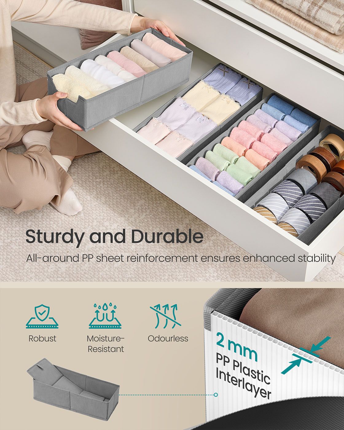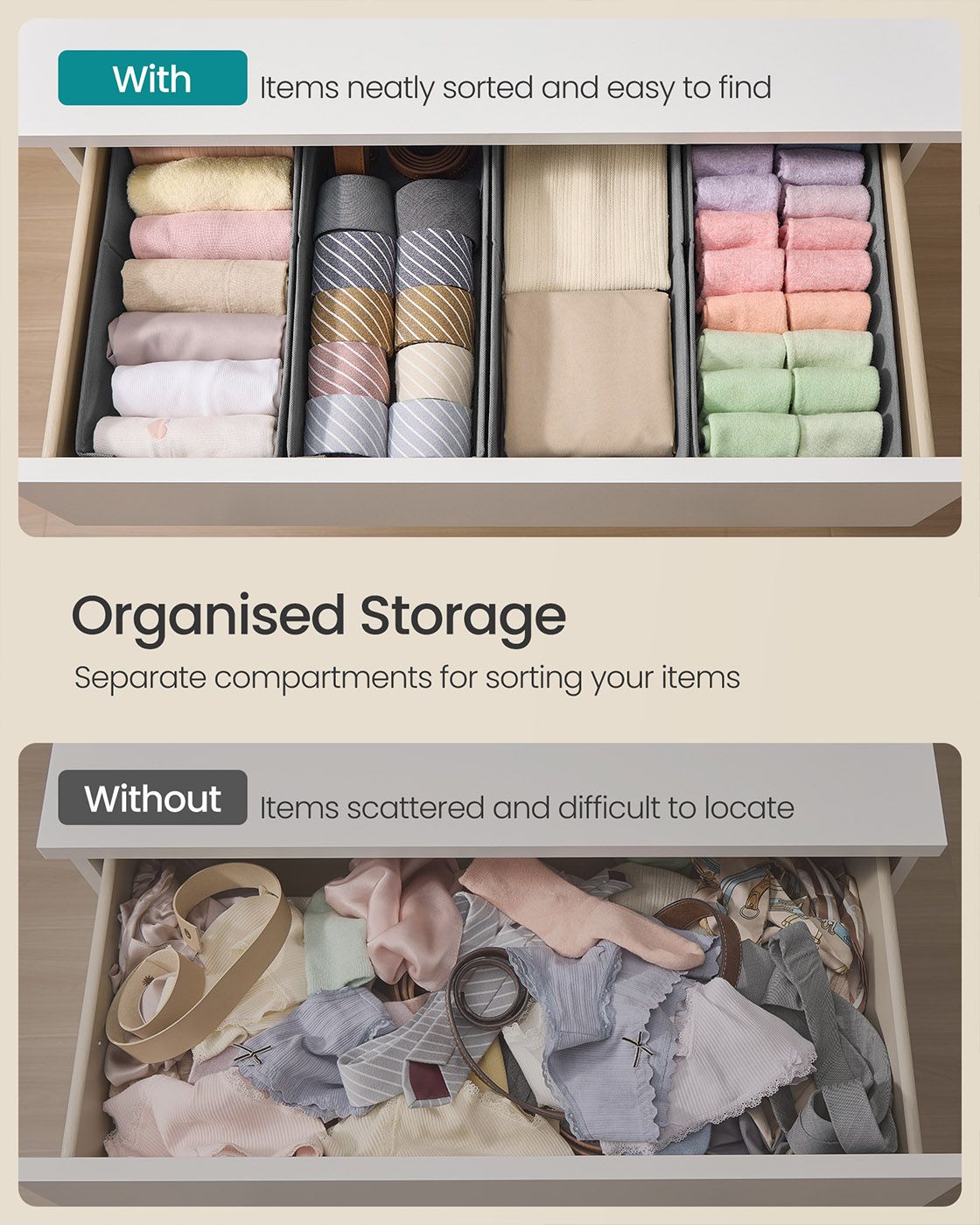 Drawer Organisers - VELON Foldable Set Faux Leather 40cm - Dove Grey