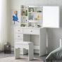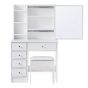 Dressing Table 5 Drawers with LED Lights Sliding Mirror and Stool - White