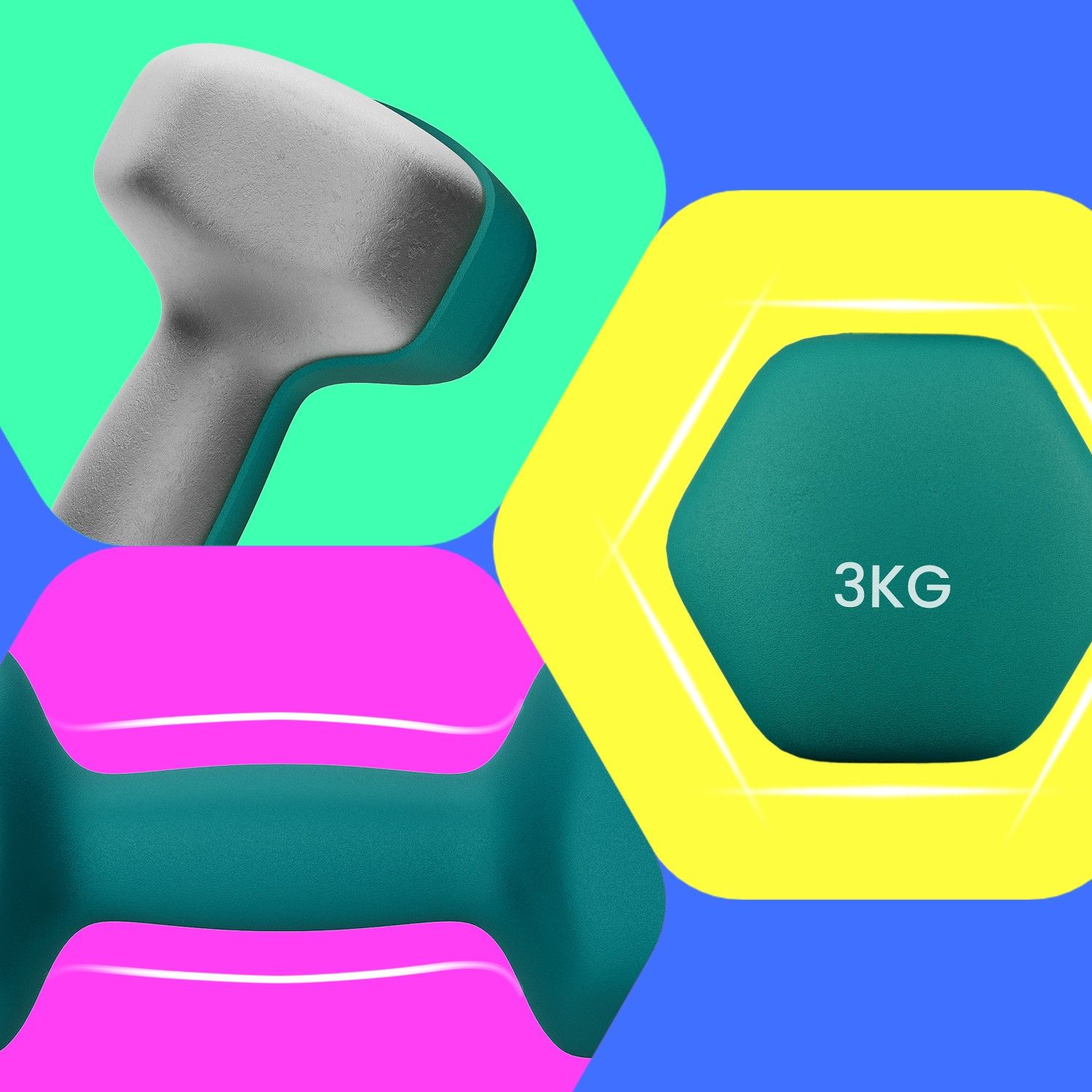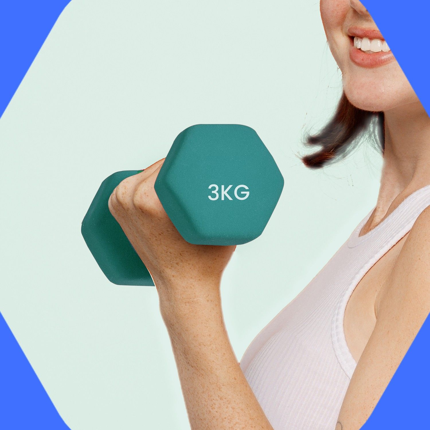 Dumbbells - LUSNOS Set of 2 Neoprene Hex 2 x 3 kg with Bar - Aqua