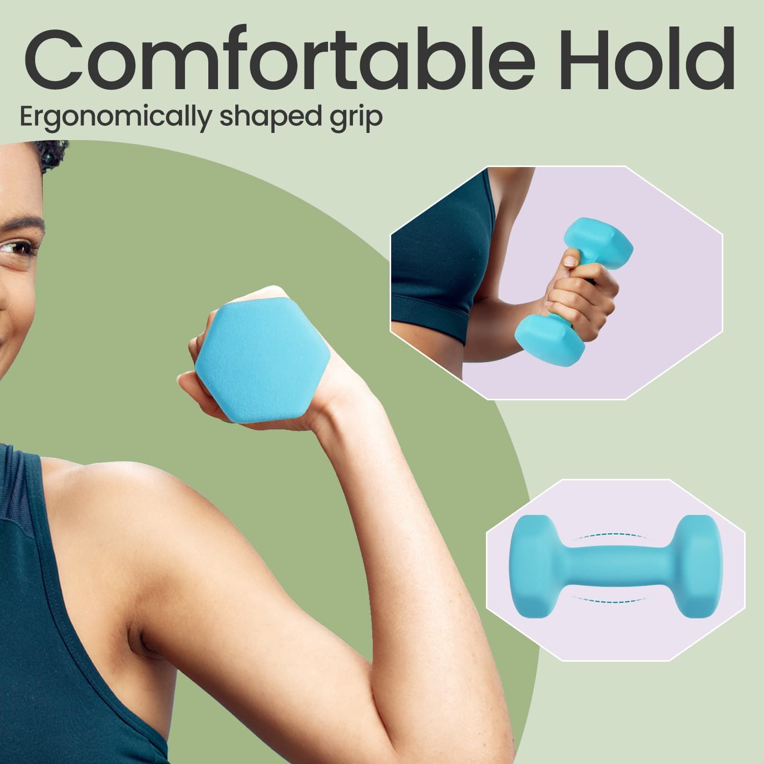 Dumbbells - LUSNOS Set of 2 Neoprene Hex Dumbbells 2 kg - Aqua