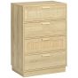 ECHO Oak Finish Rattan Chest of Drawers - Medium-sized, 4 Drawers
