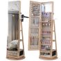 ELBERTH 360° Swivel Lockable Jewelry Armoire Cabinet with Full-Length Mirror-Natural