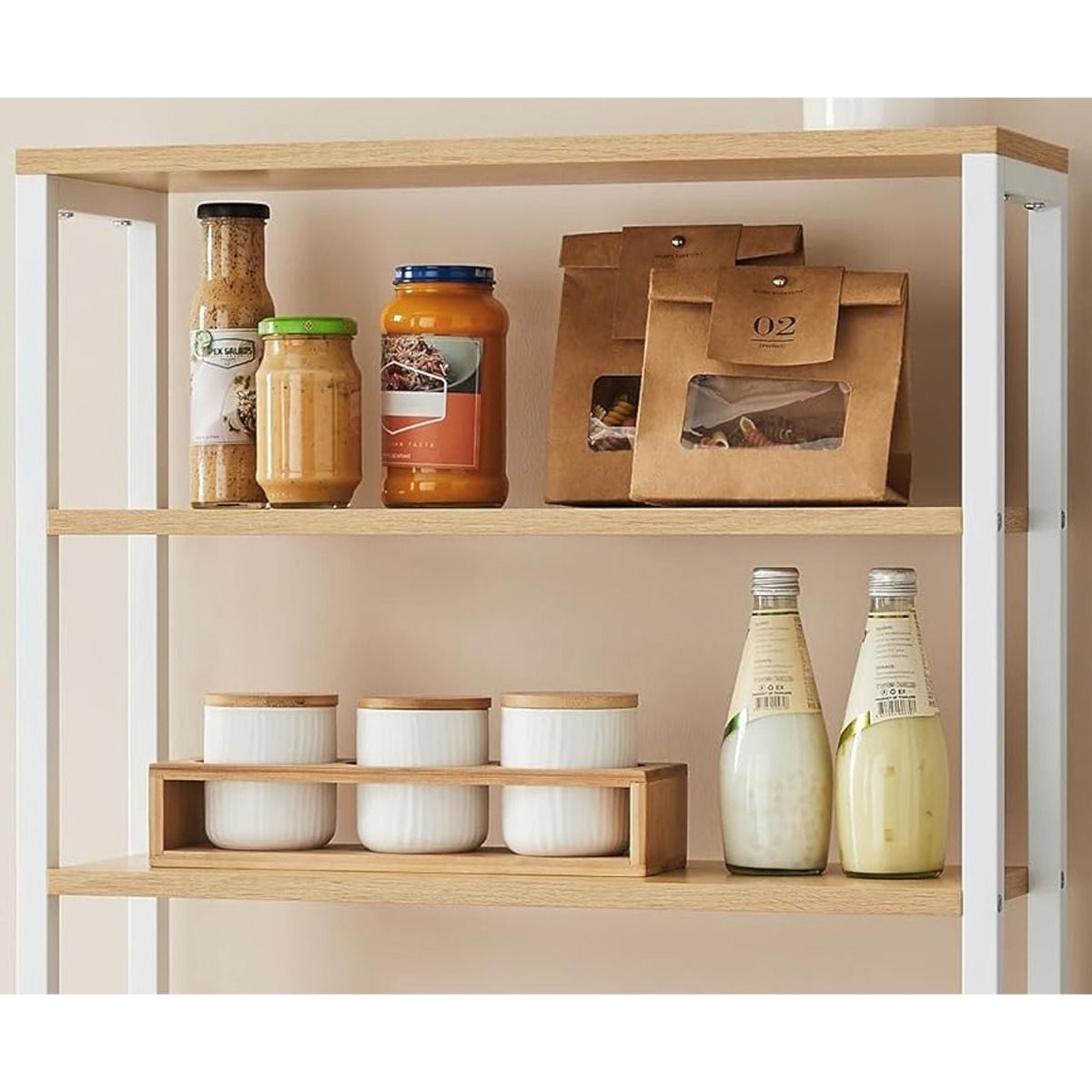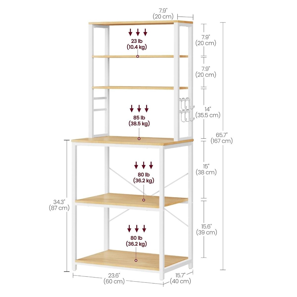 ELDORIA Kitchen Rack White Storage Unit with 6 Shelves and Adjustable Middle Shelf - White