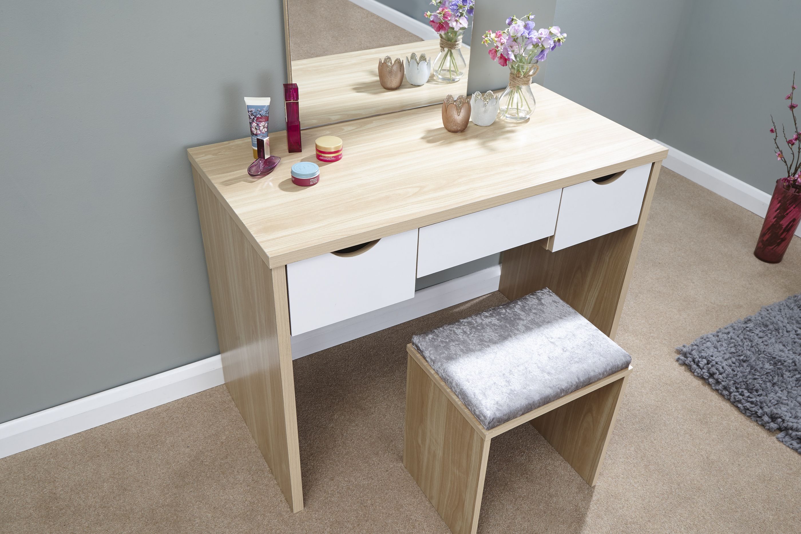 Dressing Table - ELIZABETH Dresser Oak and White 100cm