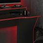 The Enzo gaming computer desk has been made with gamers fully in mind! It has everything a busy gamer could need. Featuring a large top shelf big enough for two large monitors and a generously sized ergonomic desk below suitable for the keyboard, mouse, controllers, games and more. The base of the desk features a computer store away with a ventilation hole and small shelf for games or controllers. This modern looking gaming computer desk is finished in black with a dark red trim making it a stunning addition to any home or office. Care instructions: Wipe carefully with a soft, dry cloth.