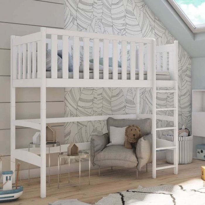 Introducing the Everett Felix Wooden Loft Bed Frameāa sanctuary of style, safety, and durability for your child's room. Crafted from solid pine wood, this loft bed frame boasts a robust and timeless design. The included slatted bed base, also made of pine wood, ensures reliable support for a comfortable night's sleep. Painted with a three-layered spray of water-based paint, it prioritizes your child's health by avoiding harmful solvents. Choose the Everett Felix Loft Bed for a secure, stylish, and cozy sleep environment that blends seamlessly with any room decor.