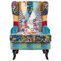 Fabric Wingback Chair Patchwork Blue MOLDE