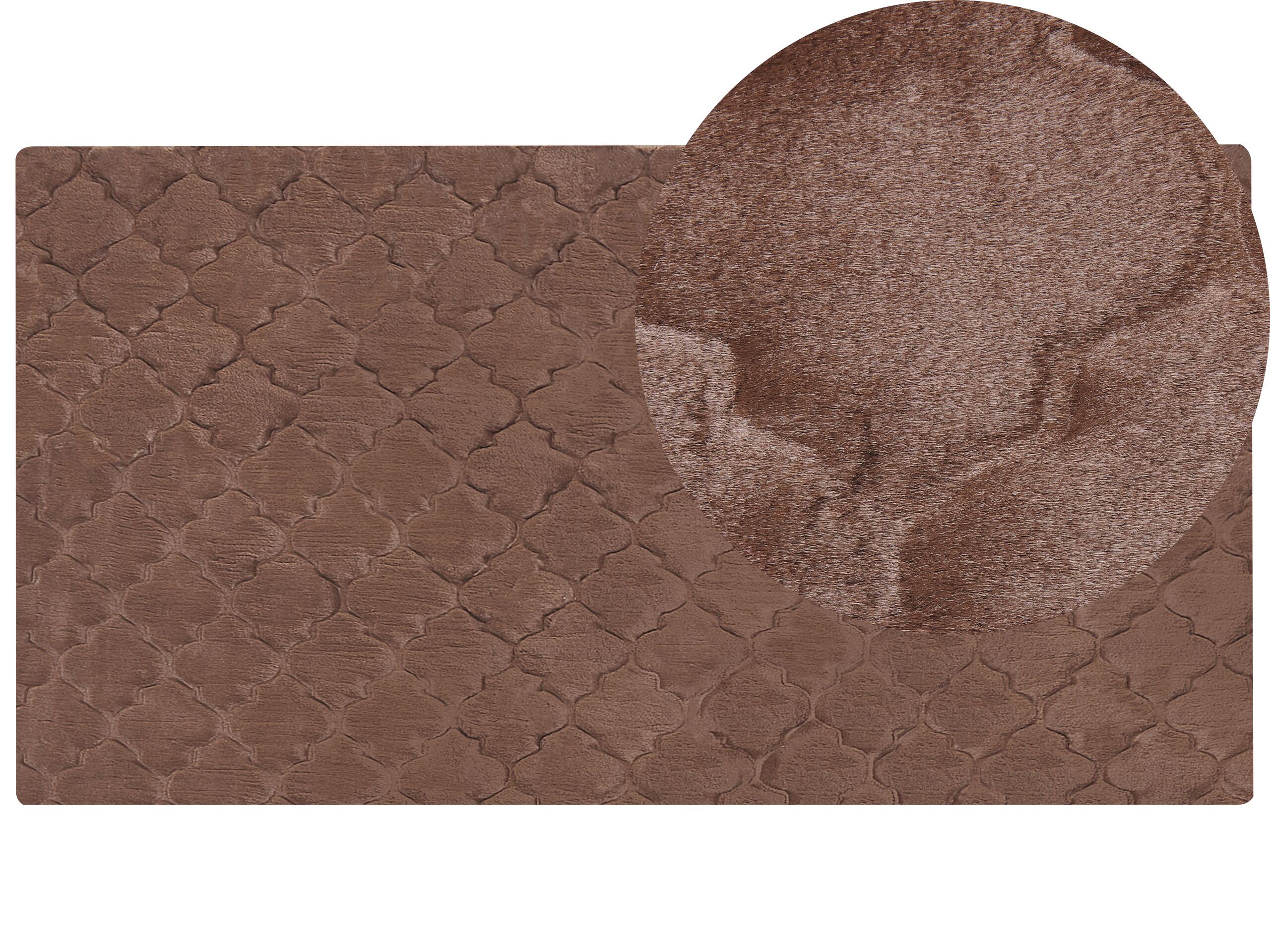 Discover the perfect way to enhance your home décor with this gorgeous faux fur rug. Made with attention to details, it offers a pleasantly soft and fluffy surface that give off a rabbit fur-like feel. The cut trellis pattern brings in a modern touch, creating an elegant statement piece on any room. This rug’s warmth will turn any space into an inviting relaxation area. Details: Color: Brown. Main material: Polyester. Material Composition: 100% Polyester Weight: 2 Assembly: Does Not Require Assembly