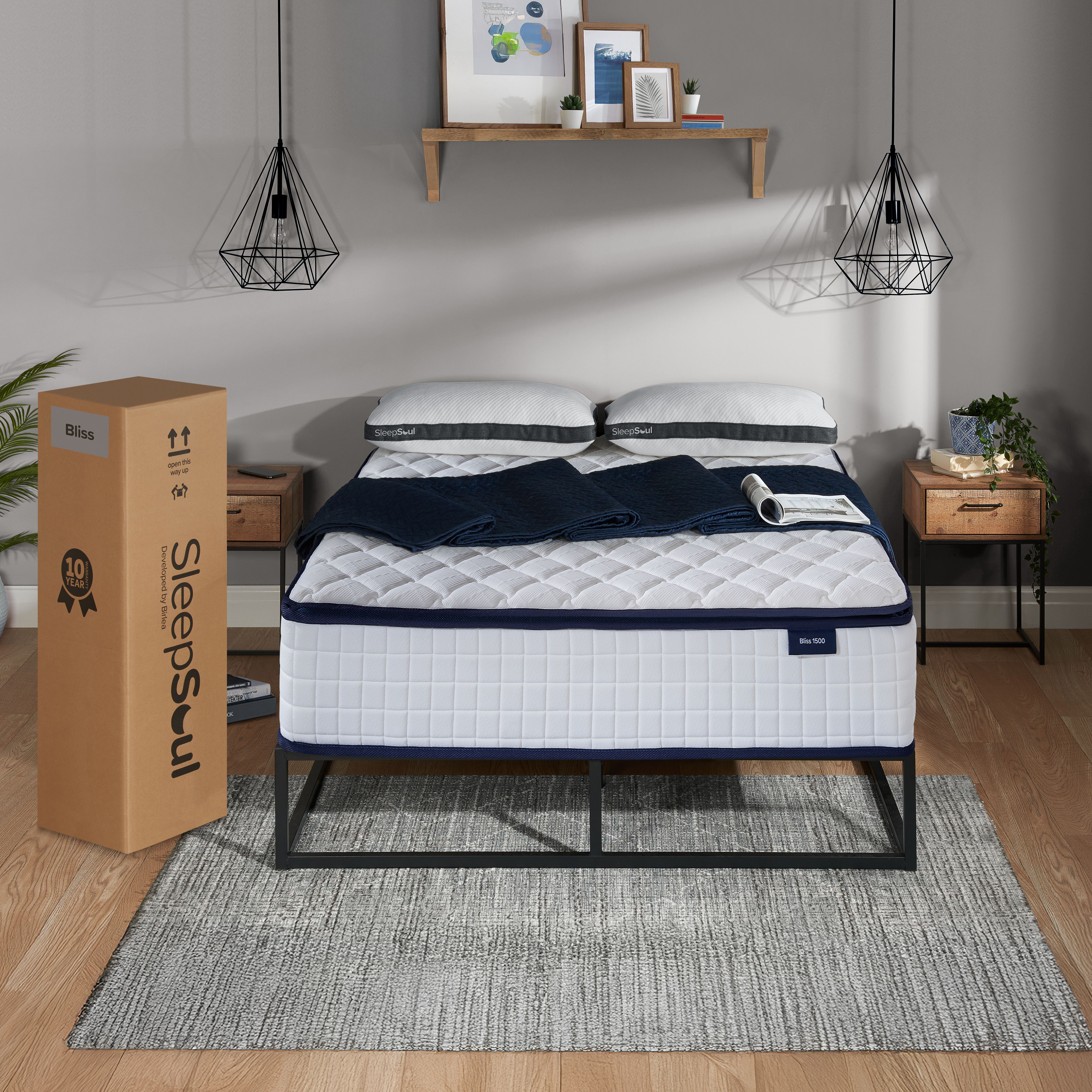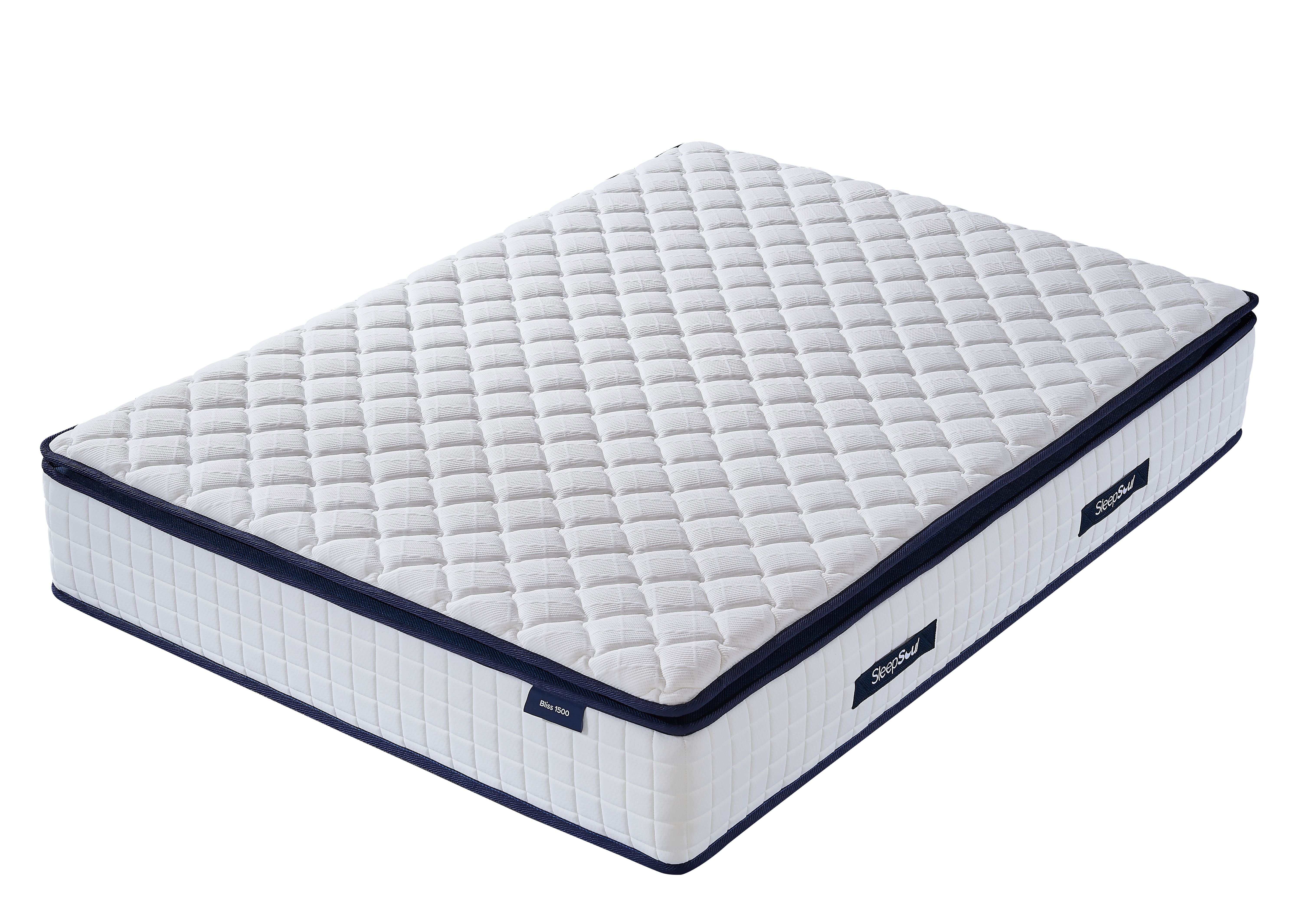 FENIXOR Single Pocket Sprung Mattress 1500 Springs - White with Blue