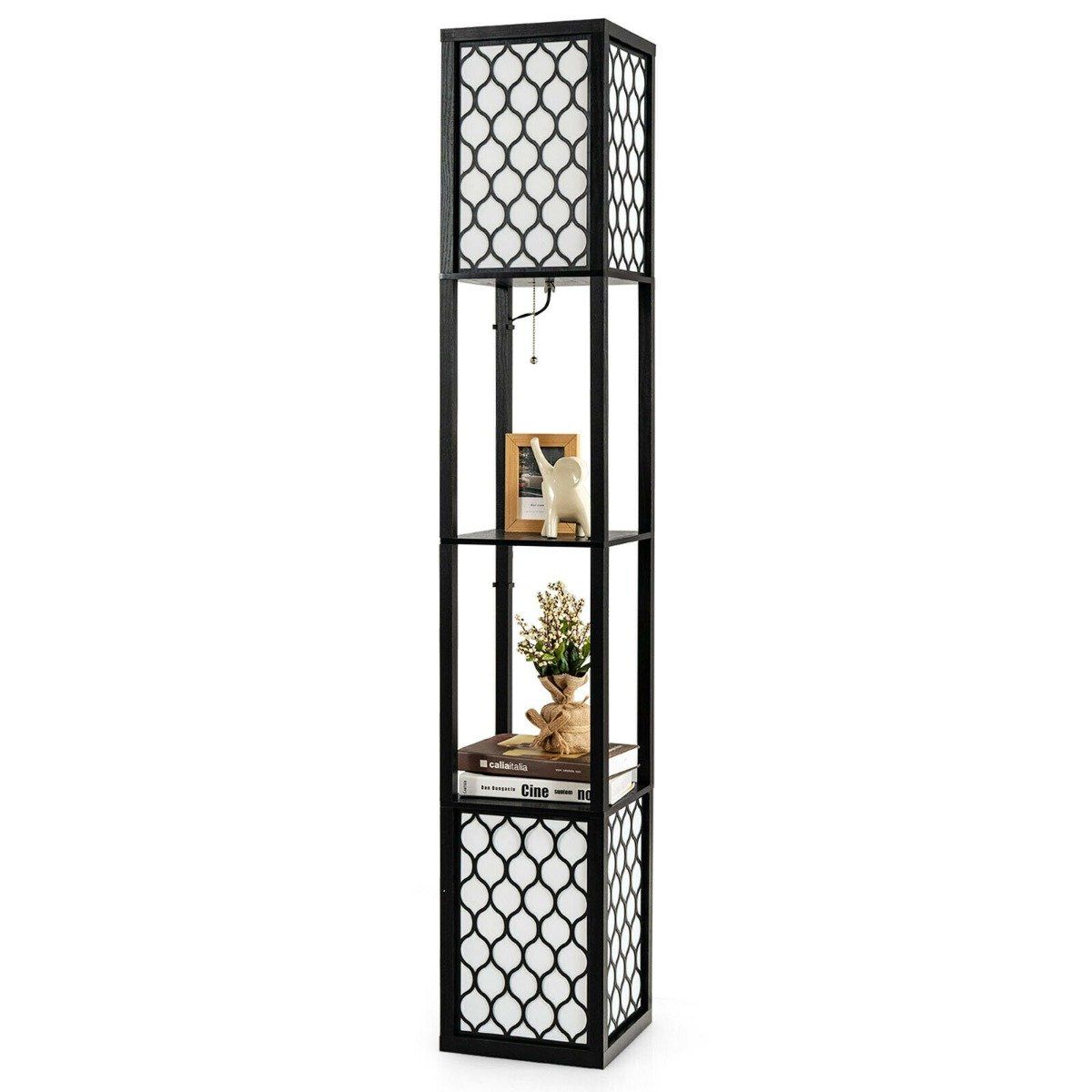 Floor Lamp - Double Floor Lamp with 2 Tier Storage Shelves and Foot Switch