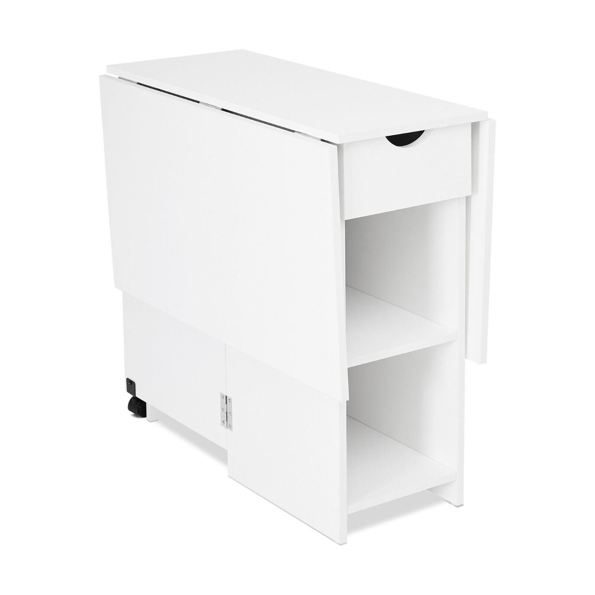 Fold Flex Dining Delight Drop Leaf Table with 1 Drawer 2 Open Storage - White
