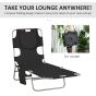 Foldable Sun Lounger, Beach Chaise Lounge with Reading Hole, Arm Slots, 5-Position Adjustable Backrest, Side Pocket, Pillow for Patio Black