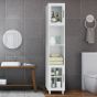 Freestanding Slim Wooden Bathroom Cabinet with Tempered Glass Doors-White