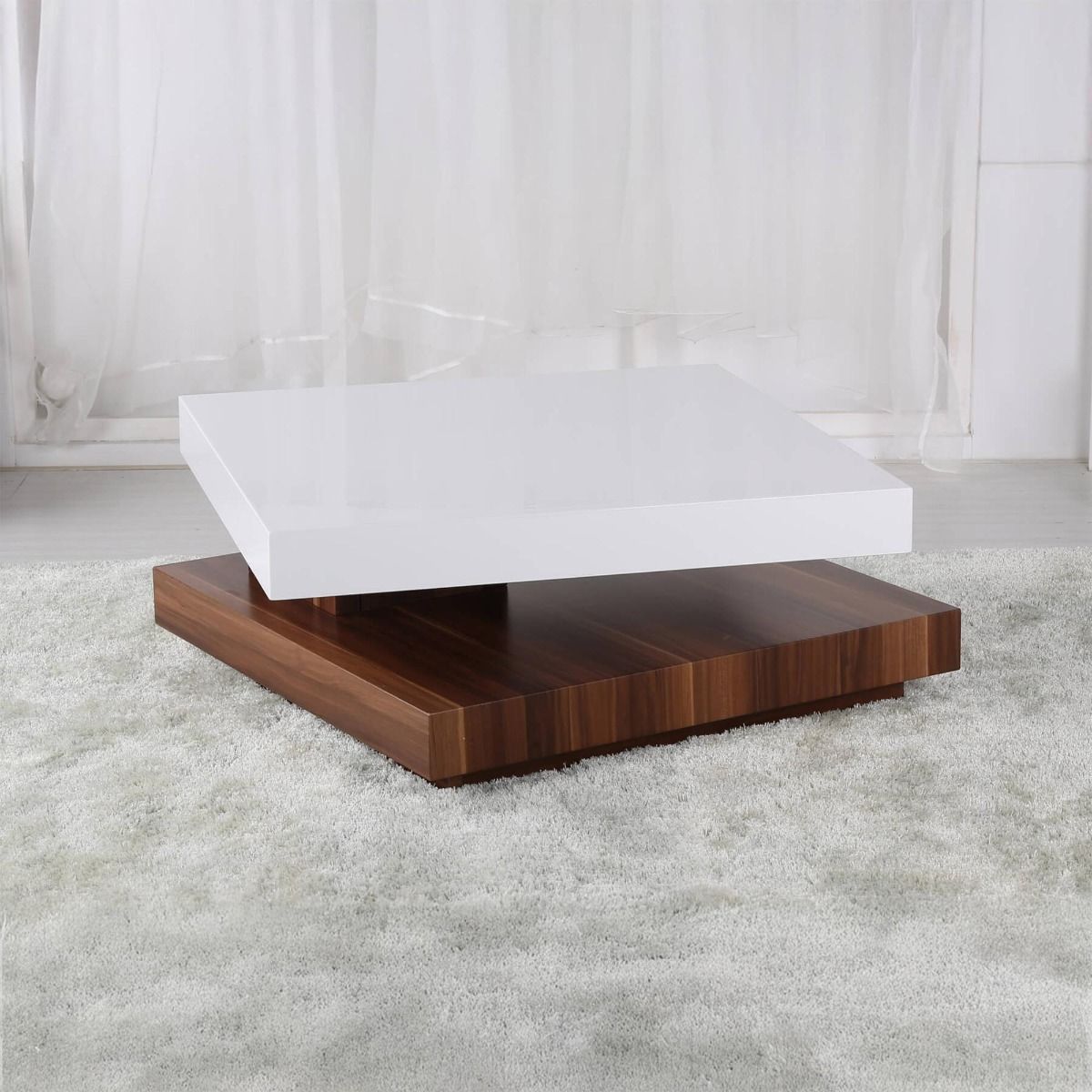 Fullerton High Gloss Moveable Square Coffee Table White and Walnut